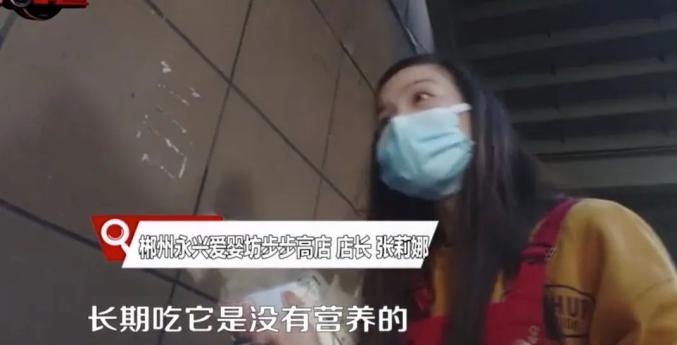 当胡先生找到卖给他奶粉的店长张莉娜时,对方承认奶粉都是她经手卖出的,自己也说了是“特殊奶粉”。可当家长告诉她,自己的孩子出现了症状,目前正在接受治疗,这位店长立即改口说是自己口误:“长期吃是没有营养的,因为它只能改善。把特殊粉说成奶粉了,跟你道歉!”