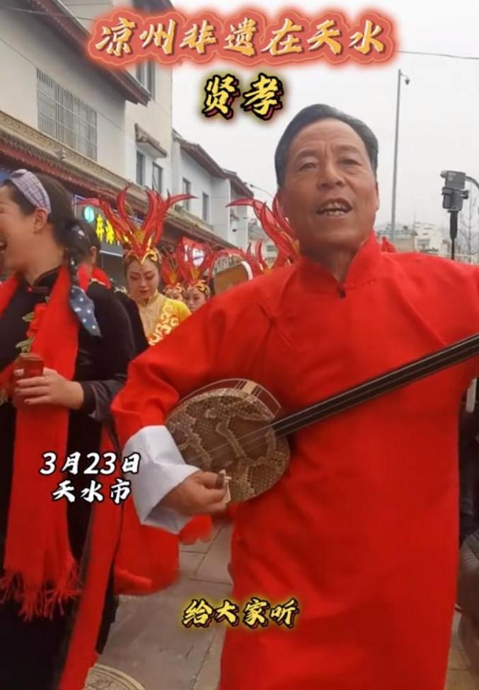 同样燃爆天水街头的还有西凉乐舞、凉州贤孝、华锐藏族民歌,留言区粉丝说“甘肃人民好团结,好感动,这种感觉就像娘家来撑腰了一样。”