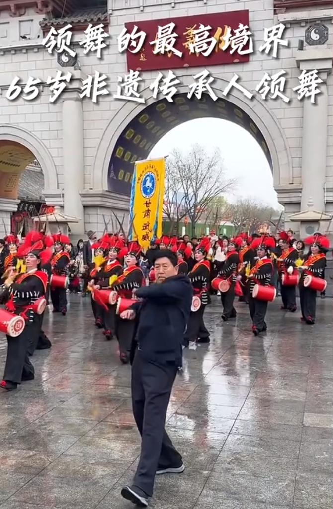 网友说“就是因为有了这样的传承带头人,我们的非遗文化才能世代相传;虽然他没有背鼓,但是气势是真的很赞!”