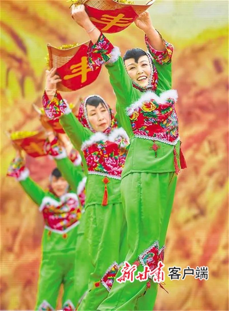 榆中农民喜气洋洋庆丰收。