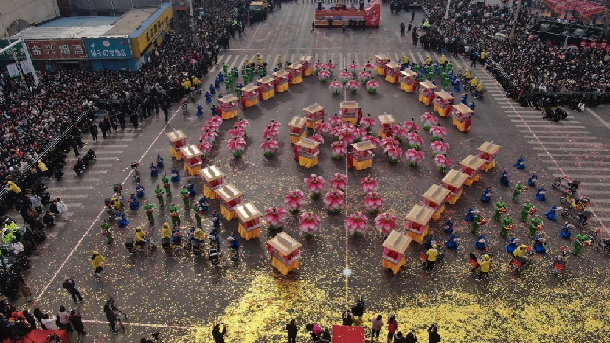 航拍社火表演。