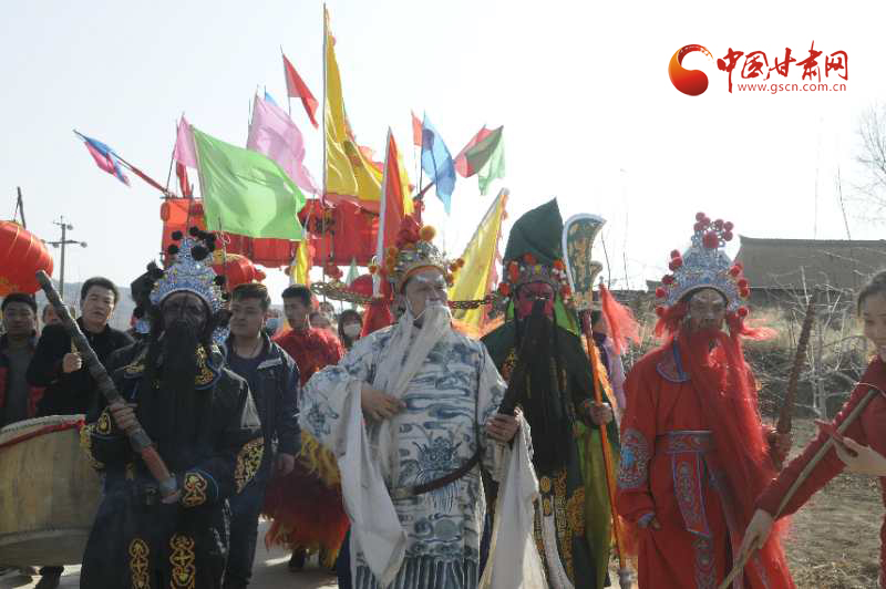狗护千祥追日去,猪拥万福驾云来。2019年春节期间,甘肃通渭县鸡川镇水莲村处处张灯结彩,锣鼓喧天;乡村舞台上秦腔歌舞,好戏连台,热闹非凡,为新春增添了热闹欢乐的气氛。勤劳朴实的村民满怀丰收的喜悦,腾龙舞狮贺盛世,欢天喜地过大年。