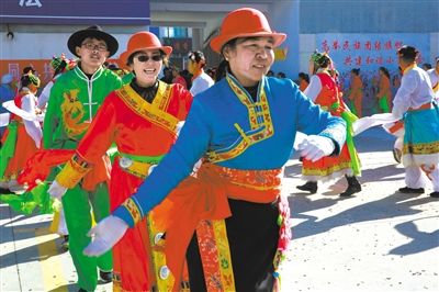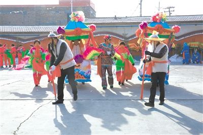 大年初七,记者在大通回族土族自治县长宁镇遇见最传统的社火表演。村民和游客熙熙攘攘,都被这地道的社火表演,引得目不暇接。展演节目有舞狮子、扭秧歌、说春官诗和广场舞等,内容健康、形式活泼、生动有趣,已成为一种新的民俗,既活跃了乡村文化,也为新春佳节增添了一份喜庆。村民说:“现在生活条件越来越好,大家也喜欢文化活动,社火表演里有10多岁的小孩,还有70多岁的老人,社火已成为我们村民们交流感情的方式,我们都很喜欢看。”图为社火表演现场。