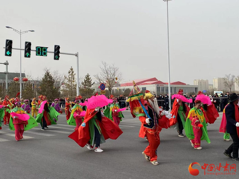 中国甘肃网2月18日讯 (西北角·中国甘肃网记者 张振国)红红火火话团圆,锣鼓喧天过大年。正月初九,凉州区“凉州儿女心向党·龙腾鼓舞贺新春”城乡社火展演活动在市区火爆上演。