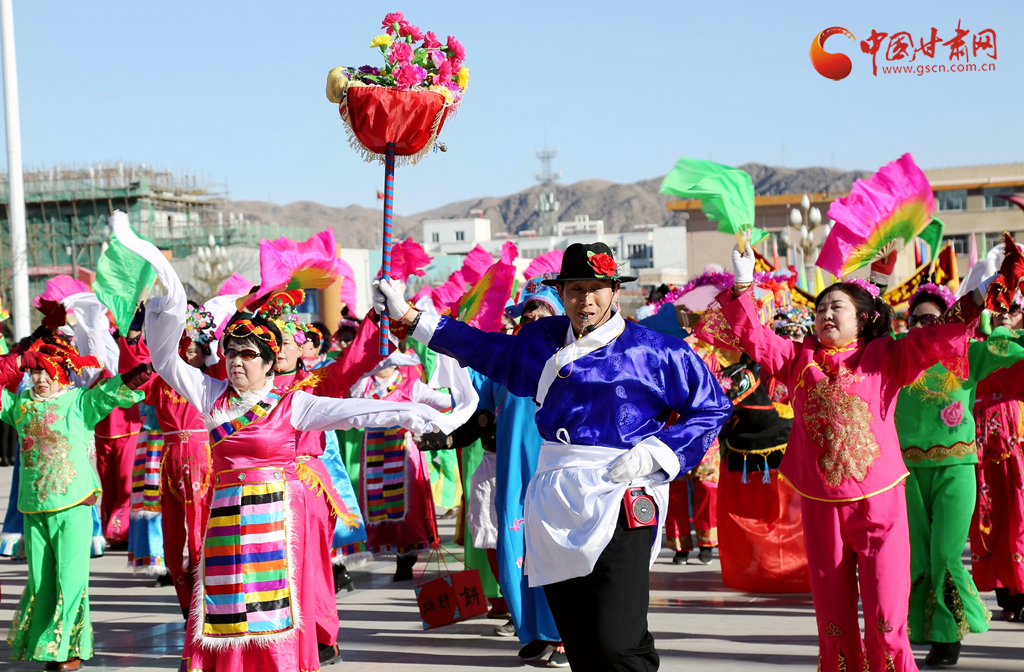 2月11日,来自金昌市永昌县的6支社火队正在为市民表演民俗节目。记者了解到,为营造欢乐祥和的节日氛围,丰富群众的节日文化生活,永昌县已连续多年举办春节社火及文艺节目集中展演活动。