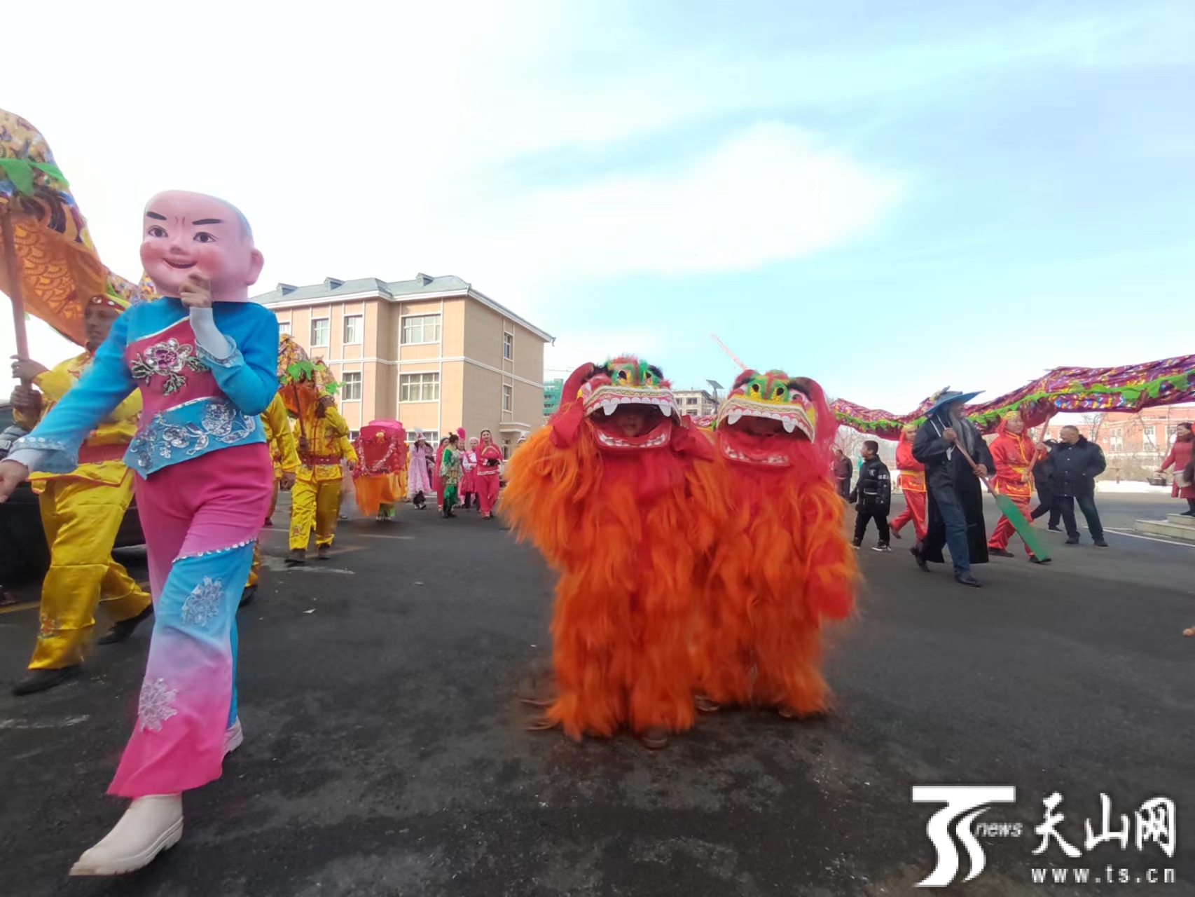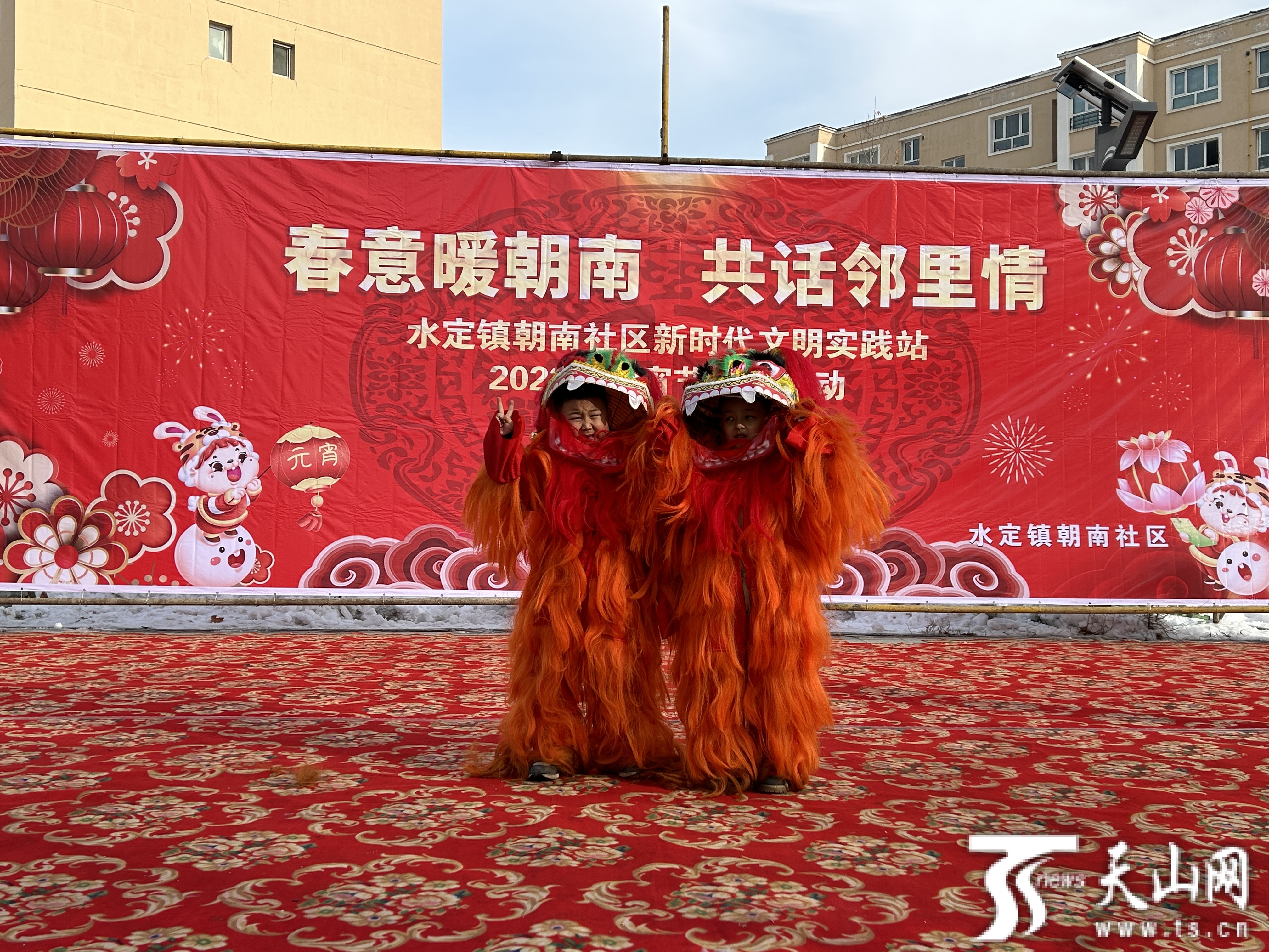 2月2日下午,霍城县水定镇朝南社区举办的“春意暖朝南 共话邻里情”元宵节联谊活动中,两只萌萌的小狮子在社火表演中格外吸睛。一巡演完,小观众们就用气球、烟花棒等当“绣球”,和小狮子一起追逐玩耍。