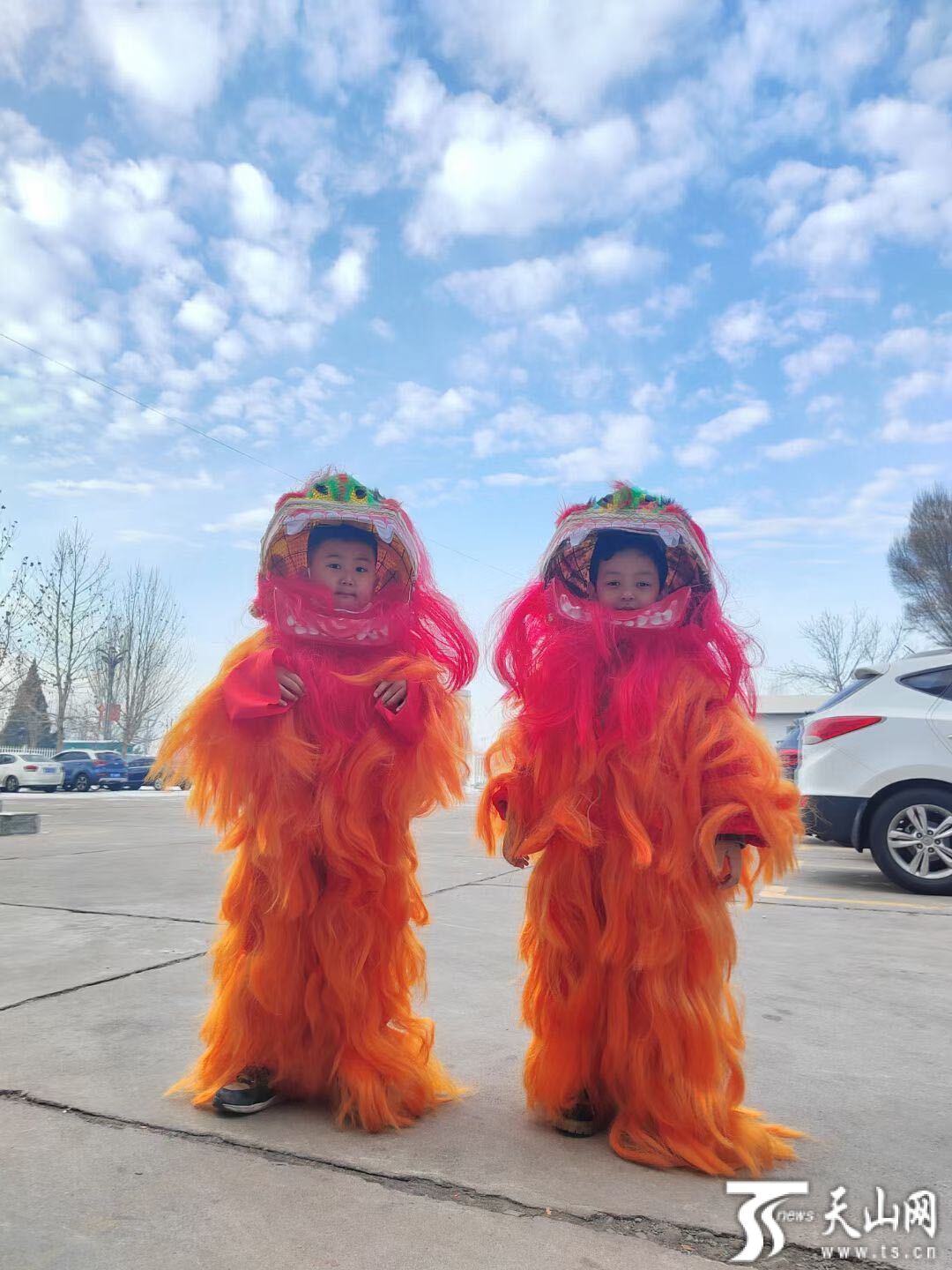 2月2日下午,两位舞狮的小朋友第一次正式表演。马文静摄