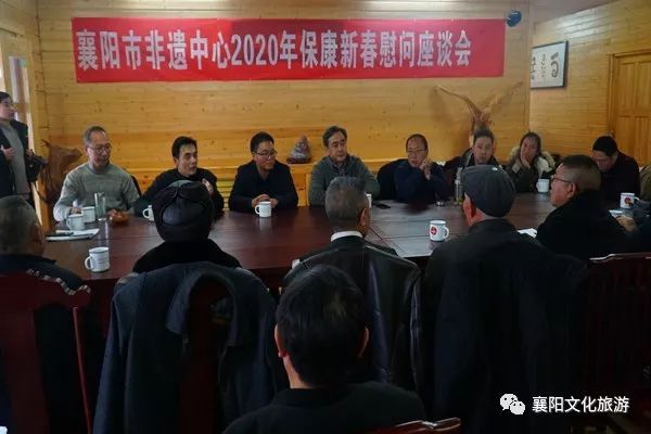在襄阳市群众艺术馆尧治河分馆的非遗书场内,襄阳市非遗中心还组织开展了新春慰问座谈会,与《黑暗传》、《沮水巫音》、《荆山盟乐》、《彭祖传说》等国家、市级非遗传承人进行了座谈,为保康县的传承人带去了新春的慰问和关怀,发放了新春慰问金,为我市全部100名襄阳市级非遗传承人征订了全年的《襄阳晚报》。