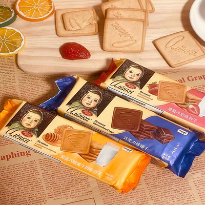 爱莲巧俄罗斯娃娃牛奶巧克力酥脆苏打早餐发酵饼干