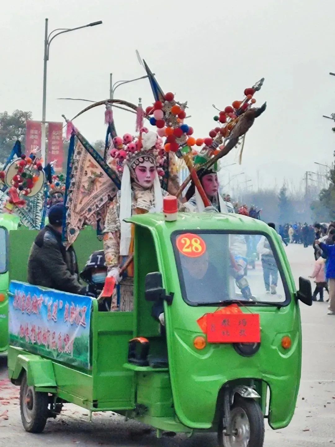 旱船,用竹子做成船形,再用彩纸或彩绸粘糊,有船姑娘驾船,走碎步,犹如船在海中行走一样,由一老翁走在前面,手拿浆板,做摇船样。