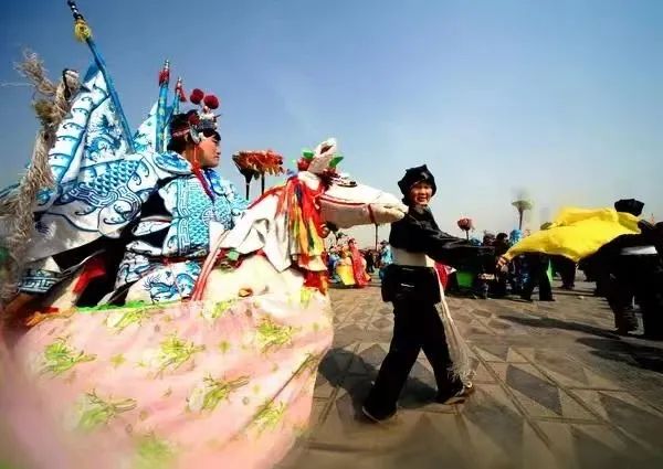 跑竹马,用竹子做骨架,扎成马形(也有驴形),以彩绸或彩纸装饰,表演者腰围竹马,宛如骑马一样,男女成双成对,编队穿梭奔驰、跳跃、对唱,乐感强烈,节奏鲜明,气氛热烈。
