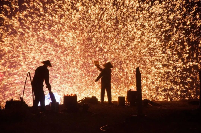 2.打铁花风火轮:观赏独特的打铁花表演,感受金属与火焰的碰撞之美。