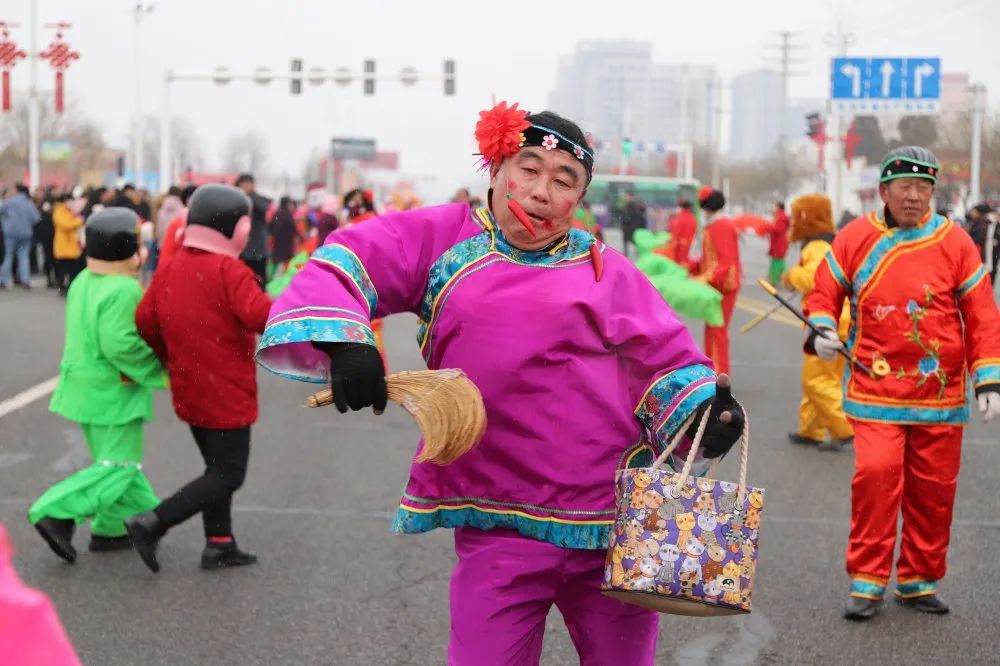马衔山秧歌出街在过去那可是“万人空巷”的壮观场面。演出队一路边扭边唱,锣鼓喧天,鼓乐齐鸣。头戴假发套,身穿红绸袄,腰系彩裙,足穿绣鞋的“大姑娘”浓妆艳抹,“她们”一手持彩灯(形似宫灯),一手持舞扇“扭捏作态” ;身穿大花袄,灯笼裤的窑婆左臂挽柳条筐篮,右手持棒捶,脸上还有一个黄豆大的“黑痣”,气势汹汹地上演着“棒打鸳鸯”。手持“船桨”的老汉在“旱船”前面像醉翁一样扭来舞去,船里那水灵灵的“大姑娘”故作着“娇羞”。