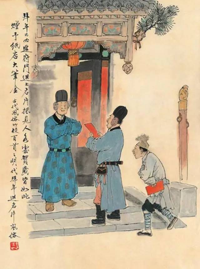 不求见面惟通谒,名纸朝来满蔽庐。我亦随人投数纸,世情嫌简不嫌虚。——文征明《贺年》