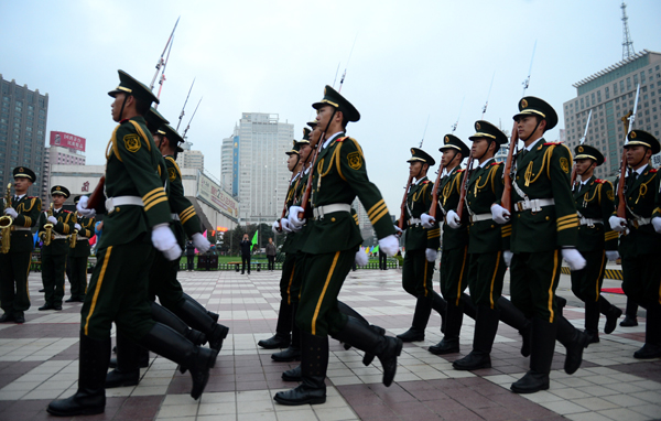 10月1日,兰州市庆祝新中国成立65周年升国旗仪式在东方红广场举行。 新华社记者 张锰 摄