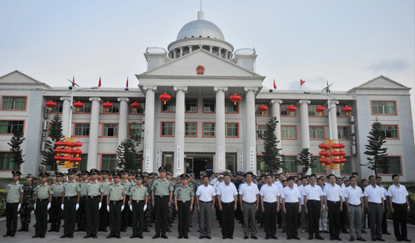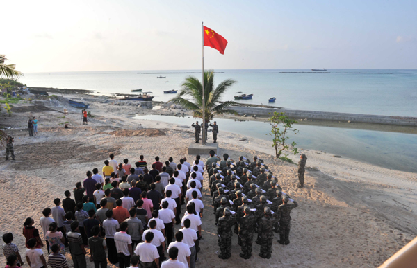 10月1日,三沙部分岛礁举行升国旗仪式。这是三沙永兴岛上的升国旗仪式。新华社发(杨冠宇摄)