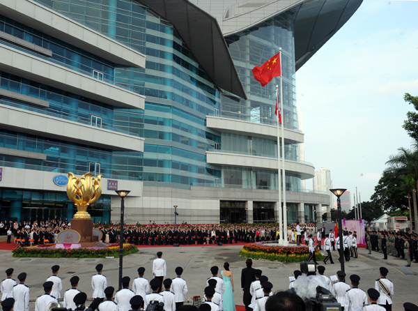 10月1日,香港特别行政区政府在金紫荆广场举行升旗仪式。新华社记者 黄本强 摄