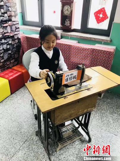 学生在体验缝纫机 刘栋 摄