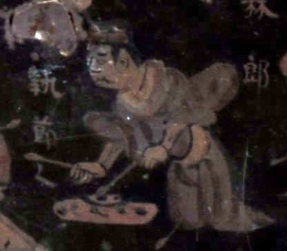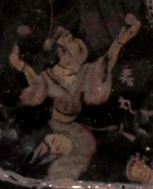 仆人旁边手舞足蹈的艺人在跳丸弄剑