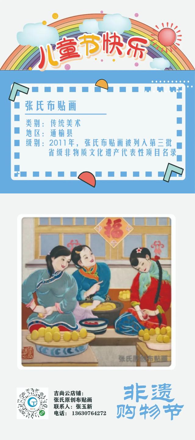 张氏布贴画利用布的颜色、纹理和质感,通过剪、裁、粘的方法,彰显出似与不似之间的凹凸效果,色彩丰富的布贴画将给孩子一次不同的文化欣赏体验。