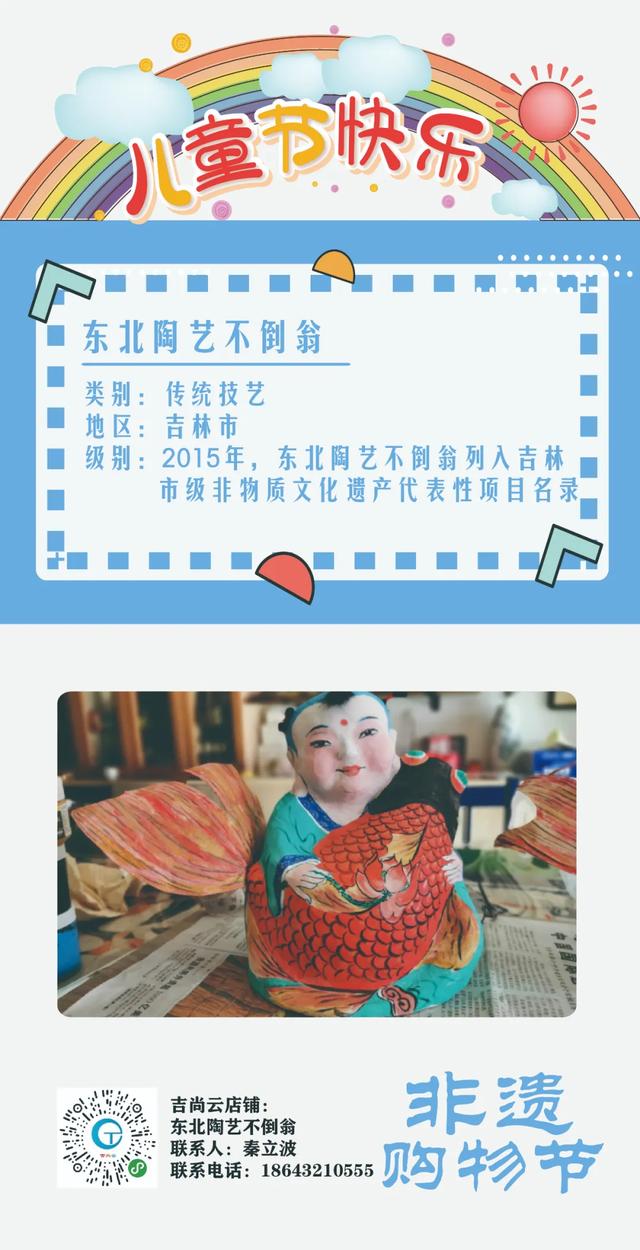如今,这两个手艺一直在传承发展,东北陶艺不倒翁和吉林面人胡造型简练,线条流畅,再现了传统玩具的风采,可以选择面人和不倒翁礼物,和孩子一起找寻童年的回忆吧。