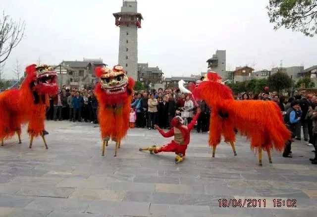 由高跷狮灯第三代传承人石开忠、魏毕金带领着学生奉上了一场《高跷狮灯闹新年》民间艺术表演,吸引了游客们驻足观看,拍手叫好,还不忘拿出手机、相机拍照留念。