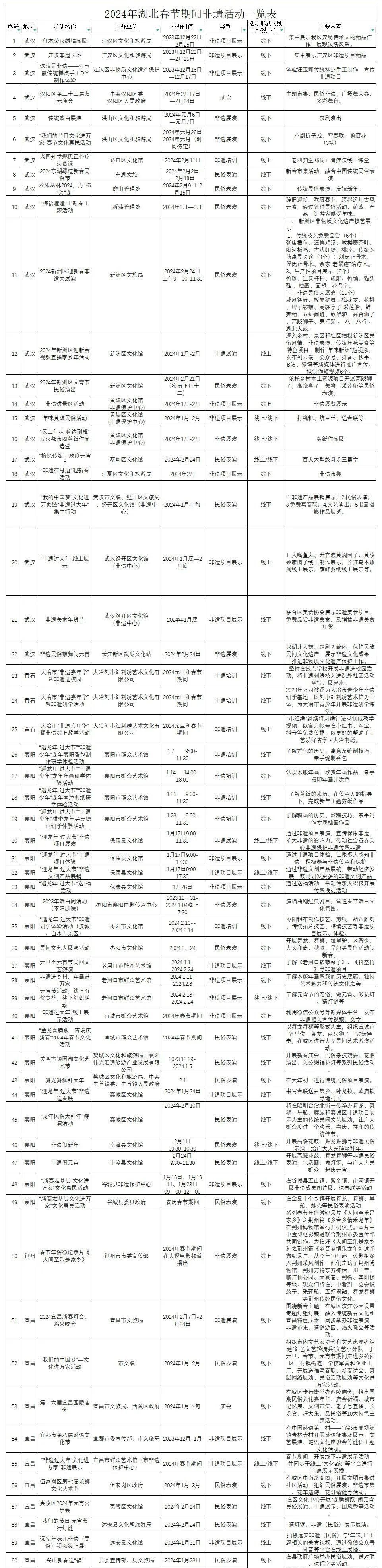 迎龙年过大节!湖北春节期间非遗活动安排来了!