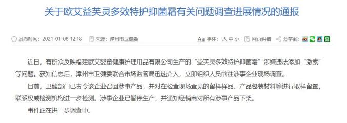 事情发酵后,涉事地区的市场监管局已经召回产品,事情等待进一步的调查。