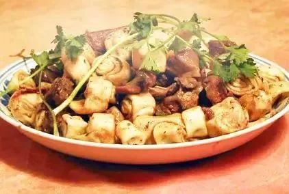 黄焖羊肉,是用手抓羊肉加土豆、粉条和青椒加郫县豆瓣酱小炒、焖制而成。武威的吃法是一盘子一斤,极其过瘾!
