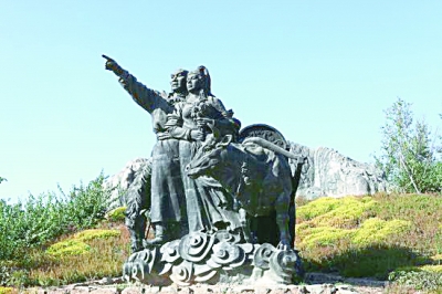 《辽史》中记载:“相传有神人乘白马,自马盂山浮土河(今河北省平泉境内的老哈河)而东,有天女驾青牛车由平地松林泛潢河而下,至木叶山,二水合流,相遇为配偶,生八子,其后族属渐盛,分为八部。”文中的神人即契丹始祖奇首可汗,天女即其妻可敦。这就是“契丹始祖传说”,也是契丹民族供奉青牛白马以示祭祀祖先的缘由。至今在当地仍在流行着男糊白马、女糊青牛的丧葬习俗。