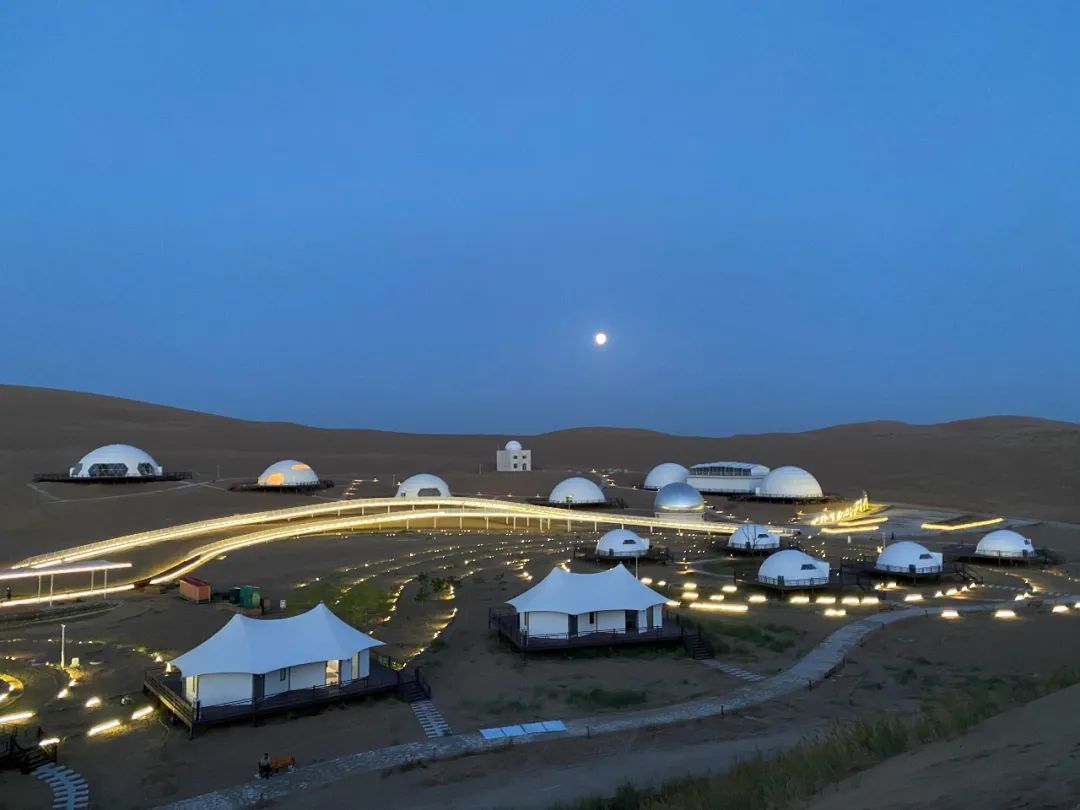 浩瀚沙海、星光璀璨,这里有最通透的大气、有最静谧的夜空,有一切满足您惬意休闲的服务设施,来到民勤的腾格里沙漠,来到摘星小镇,开启一段童话般美妙的奇缘。小镇中的独立建筑依次串联,整体建筑风格呈现科幻风的色彩,宛如茫茫太空中的一处星际基地。身处其中,仿佛在银河中做着星际旅游,我们足下这片土地就是浩渺的苍穹,伸出手,就能握住那颗独属于自己的星星。