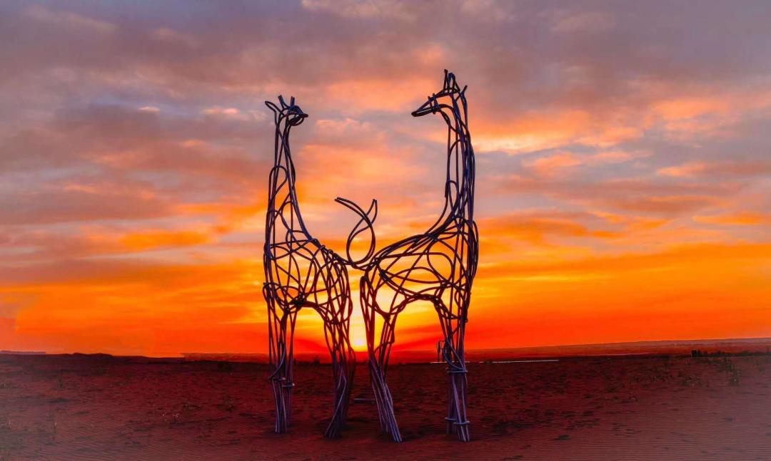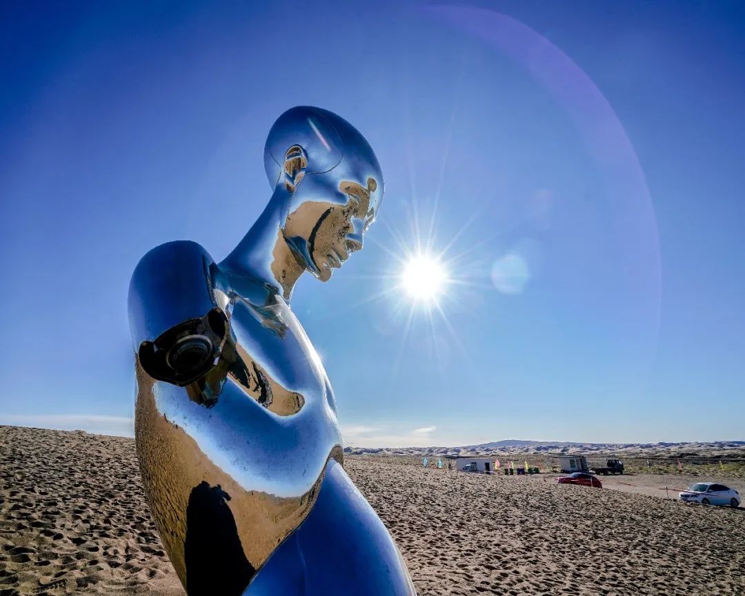 举手可摘天上星,回头却赏漠中花。在小镇的旁边,70多尊雕塑屹立在沙漠中,这个名为沙漠雕塑博物馆的基地,用全新的生态理念、文化符号和艺术风格,形象生动地传播了人沙和谐共生理念,展现了大漠与雕塑的完美融合、文化与生态的强大张力。诗情画意在大漠戈壁中挥洒驰骋,奇思妙想在天然画布上精彩演绎。民勤以博大的胸怀拥抱八方来客,迎接全国、全球的艺术大师,到“沙海绿洲•绿洲碧海”之中寻找灵感、展示技艺、放飞梦想。