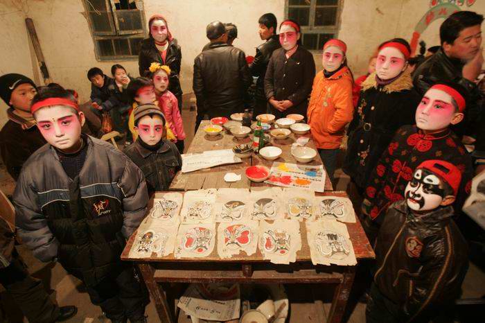 宝鸡社火脸谱至今还残存着周文化“大傩”涂脸的遗痕,从殷商青铜器上的饕餮、夔龙、夔凤等图案看,社火脸谱也不乏带有商代的遗风。如今,经历了世世代代不断演绎、传承的社火脸谱已日臻完美,从绘画、设色、章法、布局形成了一整套相对固定的程式,自成体系。