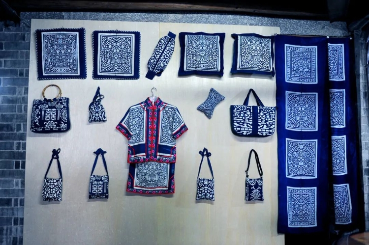 它的主要图案取材于民间传说、戏曲和绘画,所印染的纹饰往往呈现蓝底白花,构图缜密,大多以暗喻、谐音、类比等手法,将人物、灯彩、祥兽家禽、花鸟虫鱼等元素题材巧妙组合成寓意吉祥的图案,具有浓郁的生活气息。