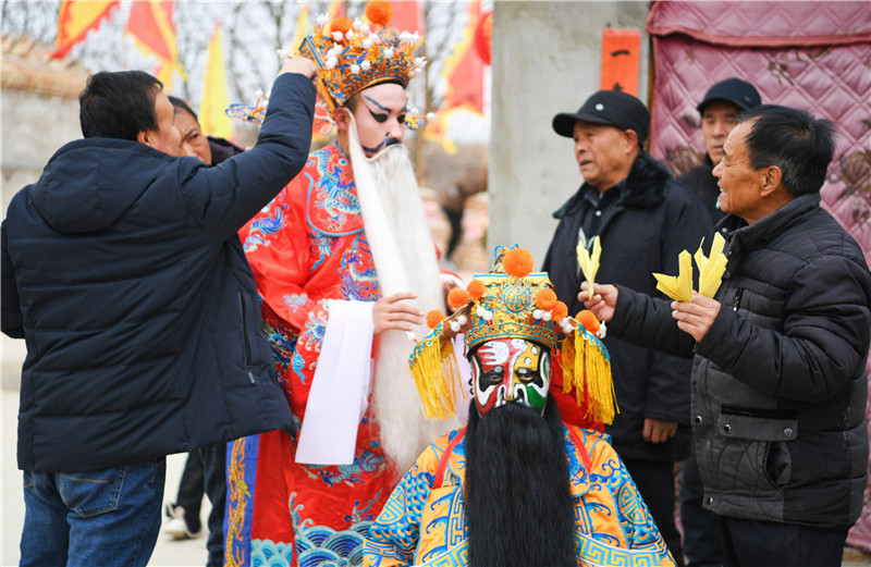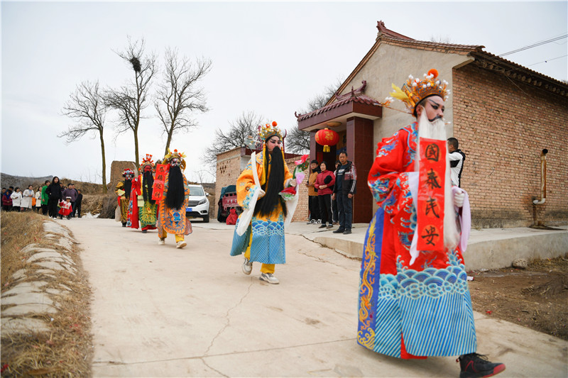 春节期间,天水市秦安县五营镇花双村老虎穴的社火队在村民们的簇拥下敲锣打鼓,走户串巷,群众在传统民俗活动中感受着浓浓年味。新甘肃·甘肃经济日报记者 瞿娟 摄