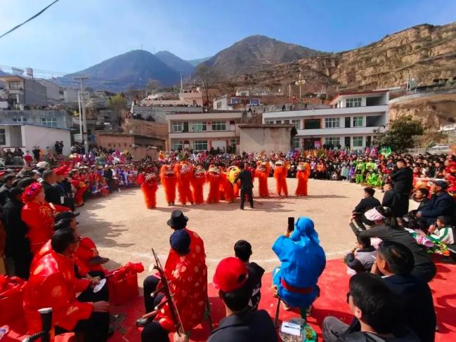 社火表演现场,队员们身着盛装,精神抖擞,神采飞扬,踏着欢快的鼓点,笑意写在脸上,他们带着新春的问候和祝福,在阵阵锣鼓声中隆重登场,激昂热烈的舞狮、富有地方特色的民俗舞蹈、掌灯子、小跷子、踩高跷、融合了小品元素的花龙船、彩色的祥龙、藏族舞蹈等传统社火节目轮番上演,处处洋溢着热闹喜庆的节日氛围,引得大家拍手称赞,让村民们在家门口尽享了一场年味十足的民俗文化“盛宴”。