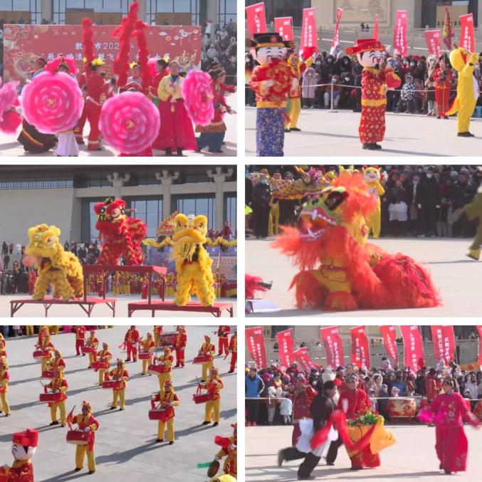 2月2日中午,敦煌市举行了2024年“辰风破浪 龙鼓飞扬”社火大赛,来自9个镇的社火代表队轮番登场,大家耍社火、扭秧歌,用丰富多彩的民俗活动喜迎新春。敦煌市领导赵全双、杨兴蓉、李富华、任红艳与市民群众一同观看了社火大赛。