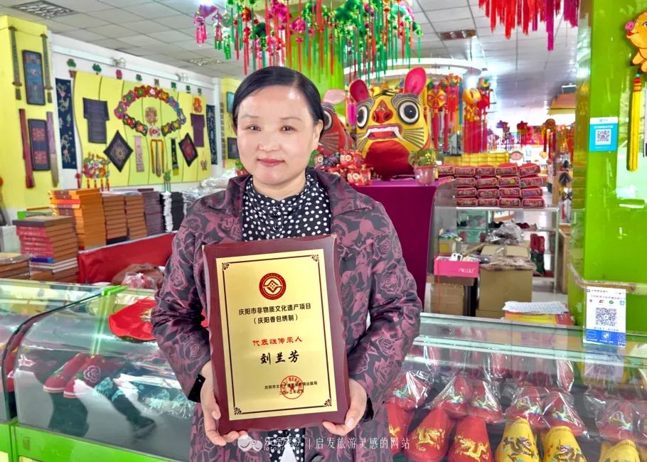 刘兰芳自幼喜爱香包绣制,是庆阳心灵手巧的民间艺术家的代表,凭着一针一线一把剪刀,她绣出了人们喜爱的作品。作为香包的传承人,她与时俱进,时刻关注不同年龄的审美需求,用心设计出了一件件具有新时代特征的香包作品,赢得良好的市场,同时也成为了专利产品。