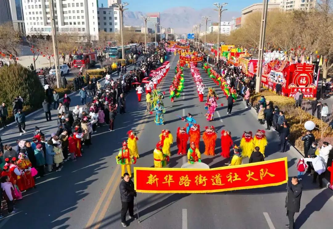 “看,花车来了!表演队来了!……”在金昌市人民文化广场,成千上万的市民群众从四面八方涌来,争相观看这一最接地气、最具年味的民间艺术表演。