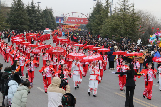 一道道文化大餐,一出出精彩演出,让人民群众笑逐颜开的同时更感受到了民俗文化的魅力。当天,来自全县各镇村装扮的65支社火队进行了游演比赛,4300余名群众个个精神抖擞,纷纷亮出自己的拿手绝活,让大家真正体验了“黄土地上的狂欢节”。