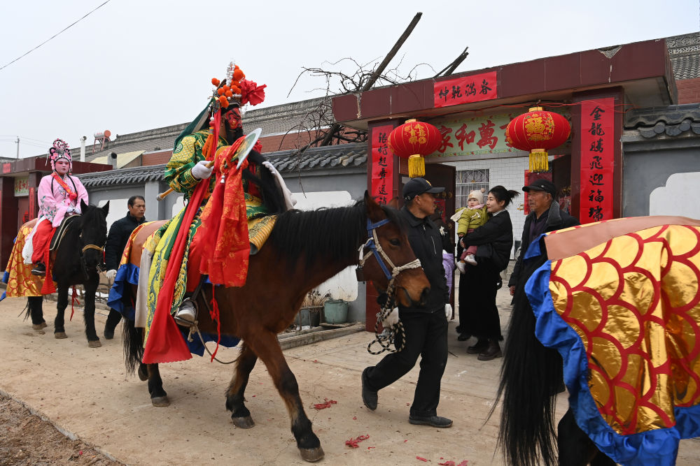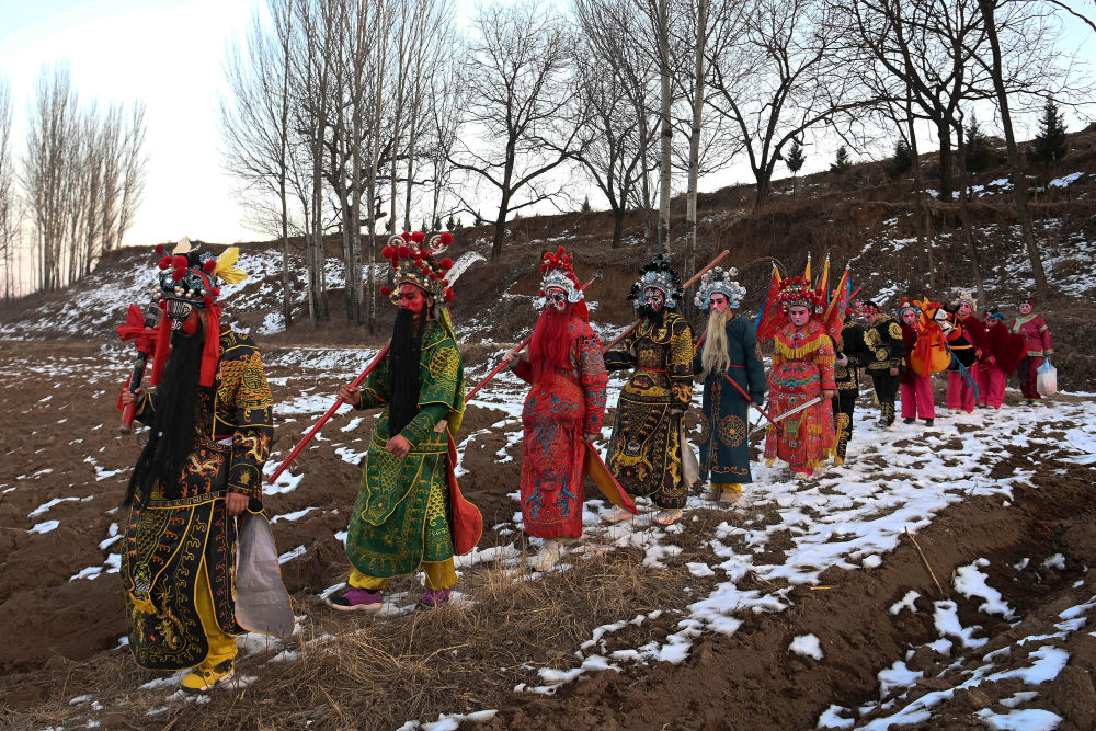 2月11日清晨,陇县黄花峪村的马社火演员准备出发游演。