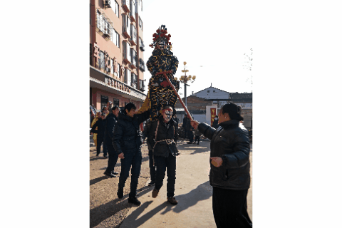 2月10日,陇县北关村的挈社火队在排练、游演。