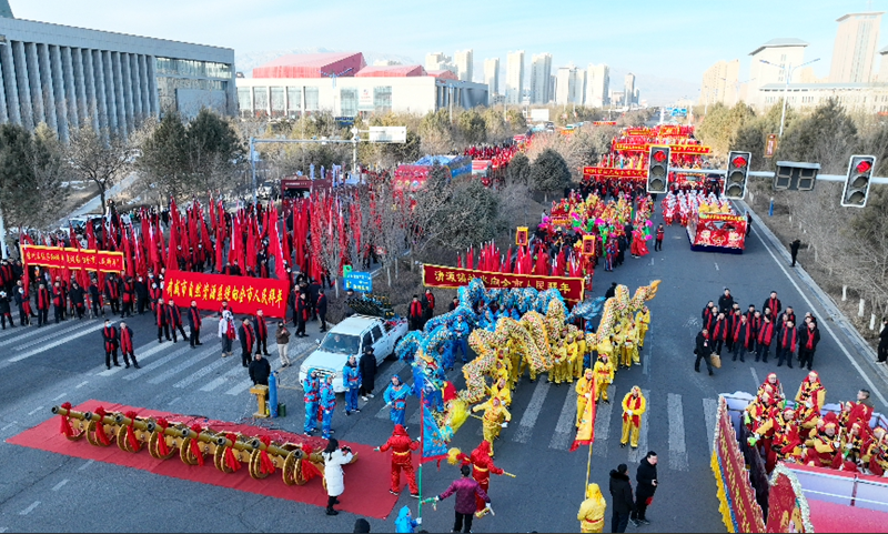 2月6日,农历正月初九,2025年春节甘肃凉州社火展演如期热闹开场。