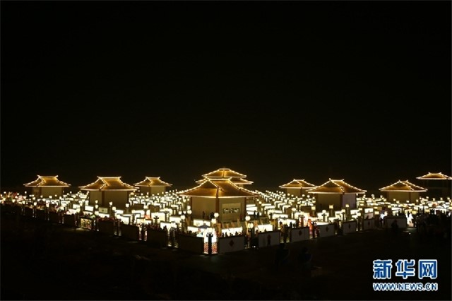 张掖市甘州区碱滩镇古城村的“九曲黄河灯阵”。新华网发(成学磊 摄)