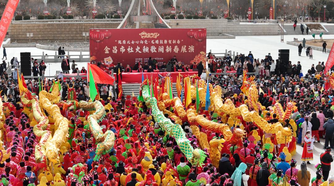 据了解,本次活动是2024年“陇原儿女心向党 龙腾鼓舞贺新春”幸福金昌百日百场文化活动的重要组成部分。在欢乐喜庆的社火表演中,大家尽情释放积攒了一年的热情与祝福,期待2024年的丰收与安康。形式丰富的社火节目让观众大饱眼福,体验了一把年味十足的民俗文化盛宴。