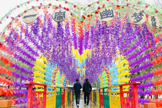 浪漫别致的网红桥上游客欣然驻足