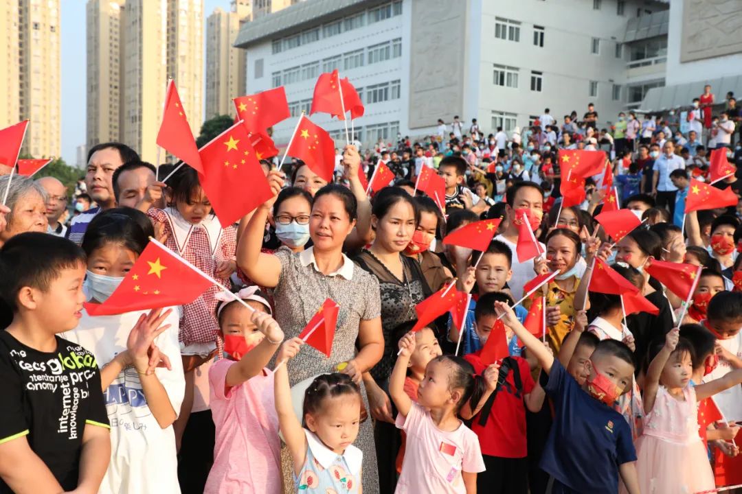 上午8时,升旗仪式正式开始,伴随着嘹亮的口号声,护旗手迈着矫健的步伐,庄严走向旗台。当雄壮嘹亮的《义勇军进行曲》响起,升旗手振臂一挥,鲜艳的五星红旗在秋风中徐徐升起。在高亢、激昂、嘹亮的国歌声中,现场党员干部群众行注目礼,摇动着手中的小国旗,满怀激情讴歌新中国,向祖国致以美好祝福。