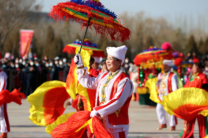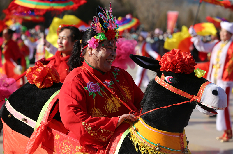 人民网银川2月3日电 (高嘉蔚)2月3日,正值农历正月十三,伴着铿锵的锣鼓声,“欢天喜地过大年·红红火火闹元宵”社火大赛决赛暨巡演活动在宁夏银川市举行。来自各县市区的18支社火队伍带着精心编排的秧歌、舞龙、舞狮等传统社火项目轮番登场,节日氛围“拉满”。