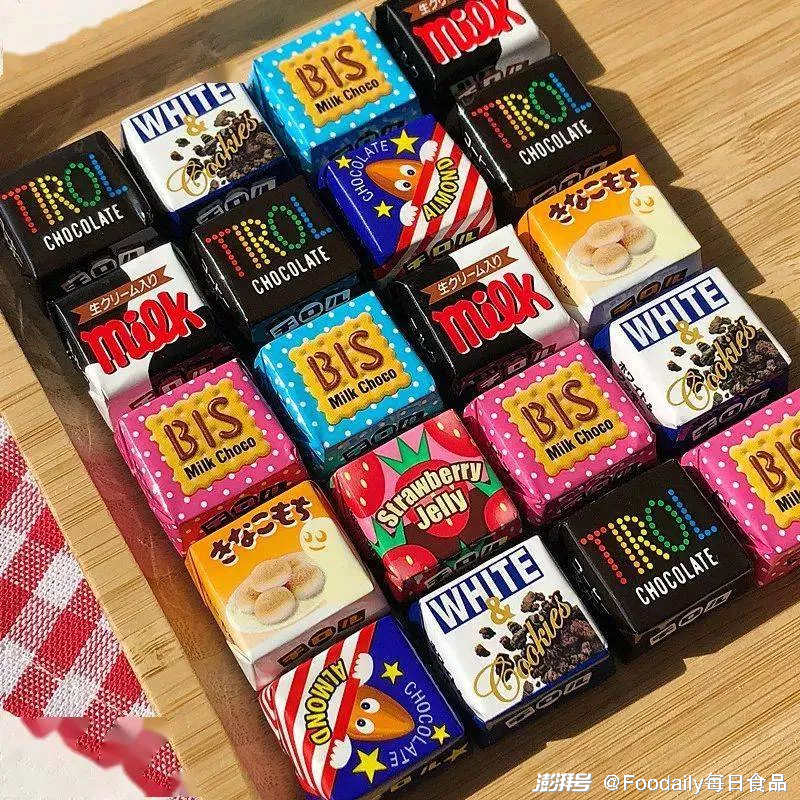 在日本,有这么一个国民巧克力品牌,仅仅靠着单价10-20日元的产品,火了将近60年,每个日本人都至少在便利店或者超市见过一次这种熟悉的彩色糖纸包装的方形巧克力,边长约3厘米,一口大小,非常方便分享和携带,它就是蒂罗尔巧克力。