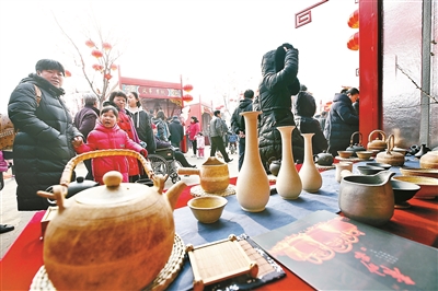 左手举着小猪佩奇的“新版”北京面塑,右手端上兔爷造型的天津泥塑彩绘,亲手磨墨、套印,尝试制作杨柳青木版年画,玩累了用河北蔚州的青砂器泡壶茶歇歇脚……京津冀携手贺新春,游客逛庙会,可把三地的非物质文化遗产精粹“一网打尽”。